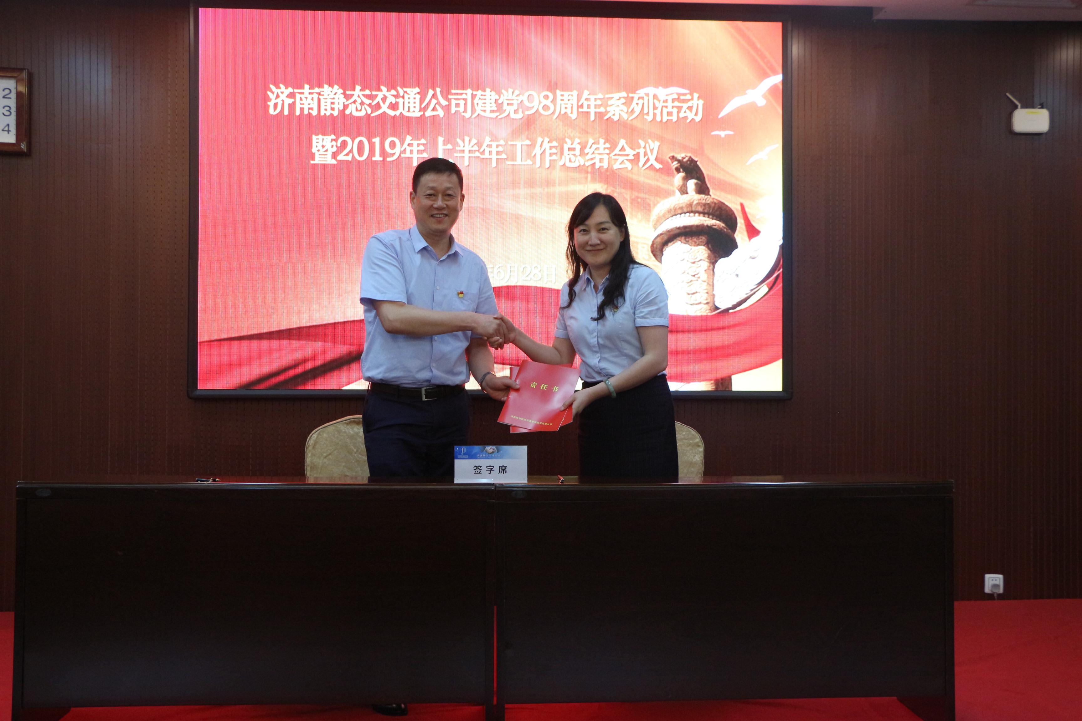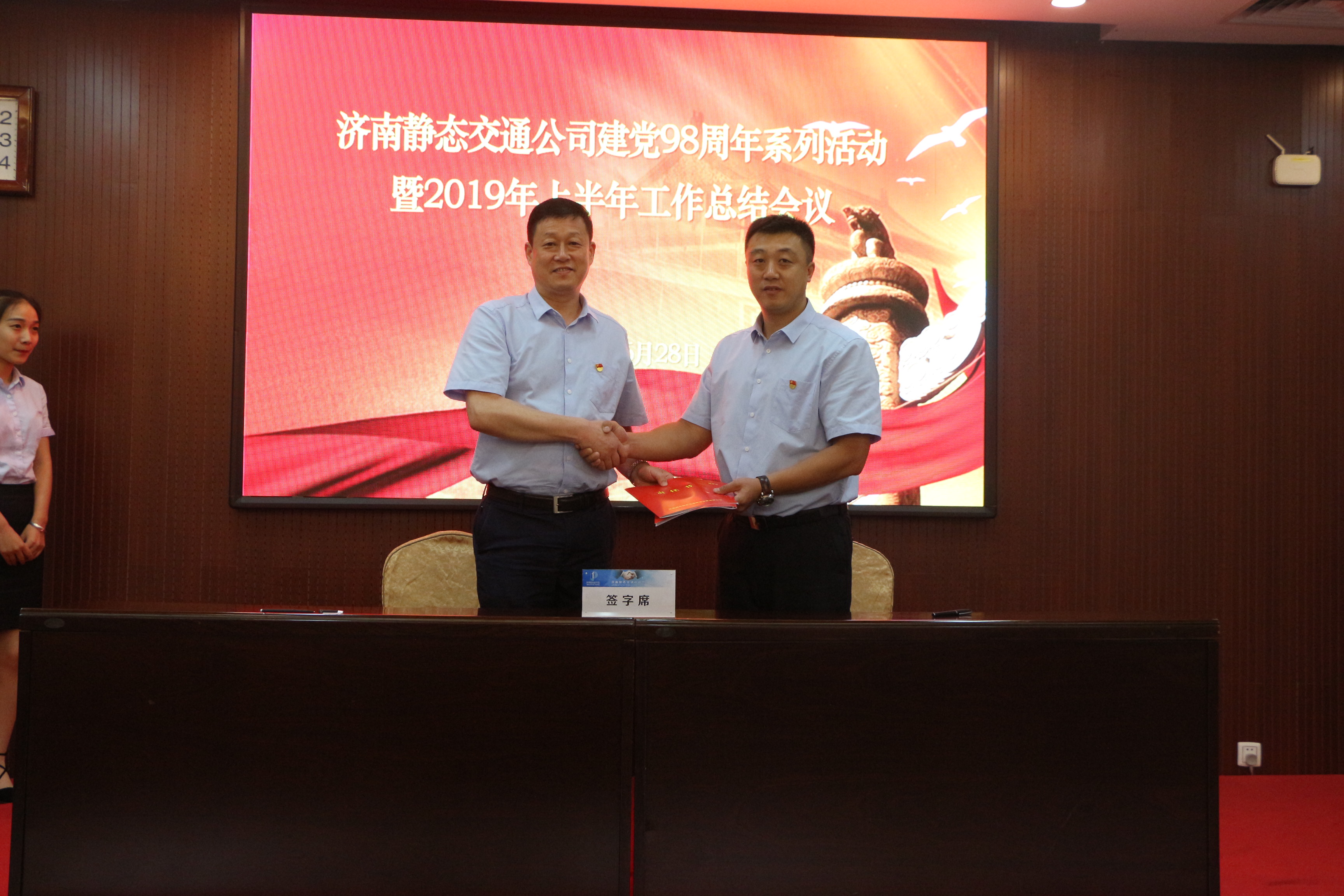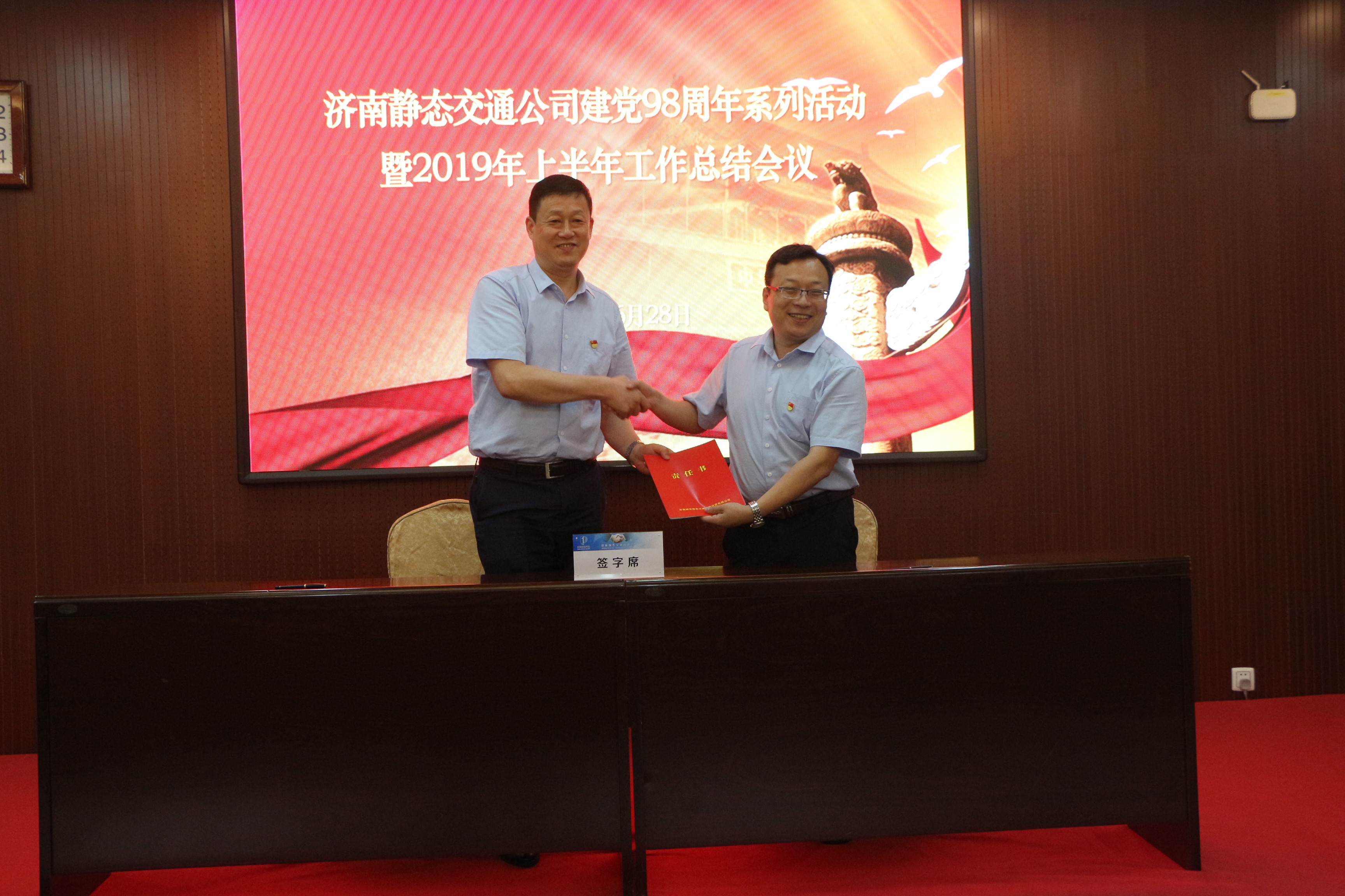 6月30日下午,濟(jì)南靜態(tài)交通集團(tuán)與歷城交警大隊(duì)在“七一”前夕,隆重舉行了“牢記初心使命、共譜警企新篇”黨建共建簽約啟動(dòng)暨共建基地揭牌儀式。此次活動(dòng)是濟(jì)南靜態(tài)交通集團(tuán)與歷城交警大隊(duì)圍繞“立足民生,為群眾解決停車難、停車亂問題”的目的,創(chuàng)新黨建工作形式和載體的一次全新嘗試,是全面貫徹落實(shí)“不忘初心、牢記使命”主題教育活動(dòng)精神的全新舉措,也是雙方以黨建引領(lǐng)促進(jìn)拓寬交流渠道、深化警企合作,實(shí)現(xiàn)共融、共